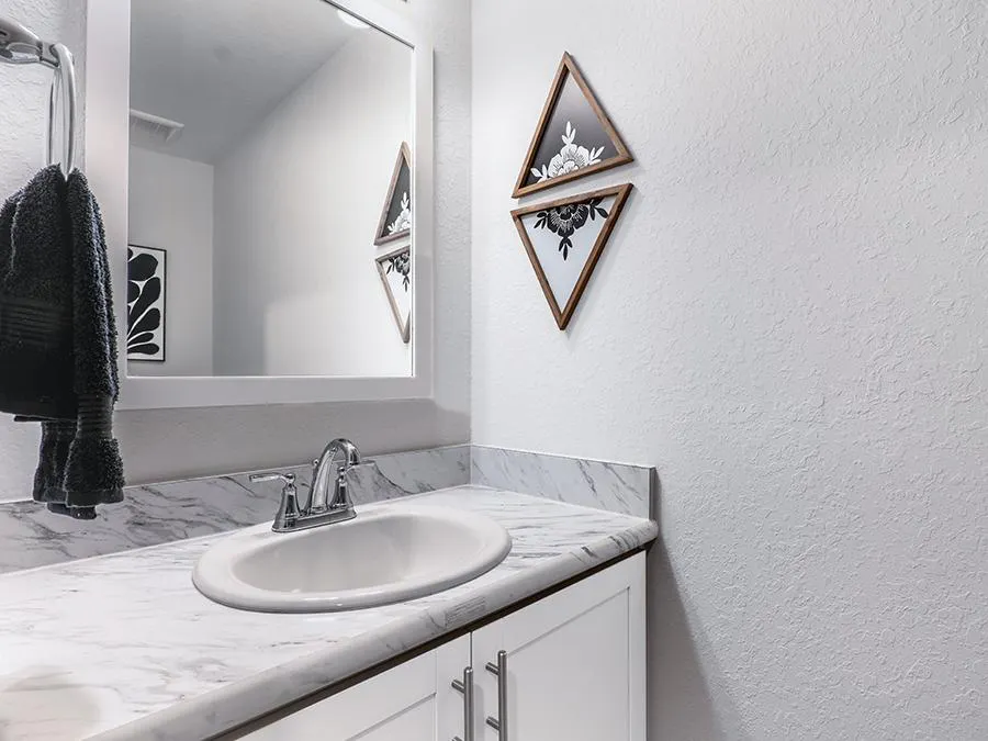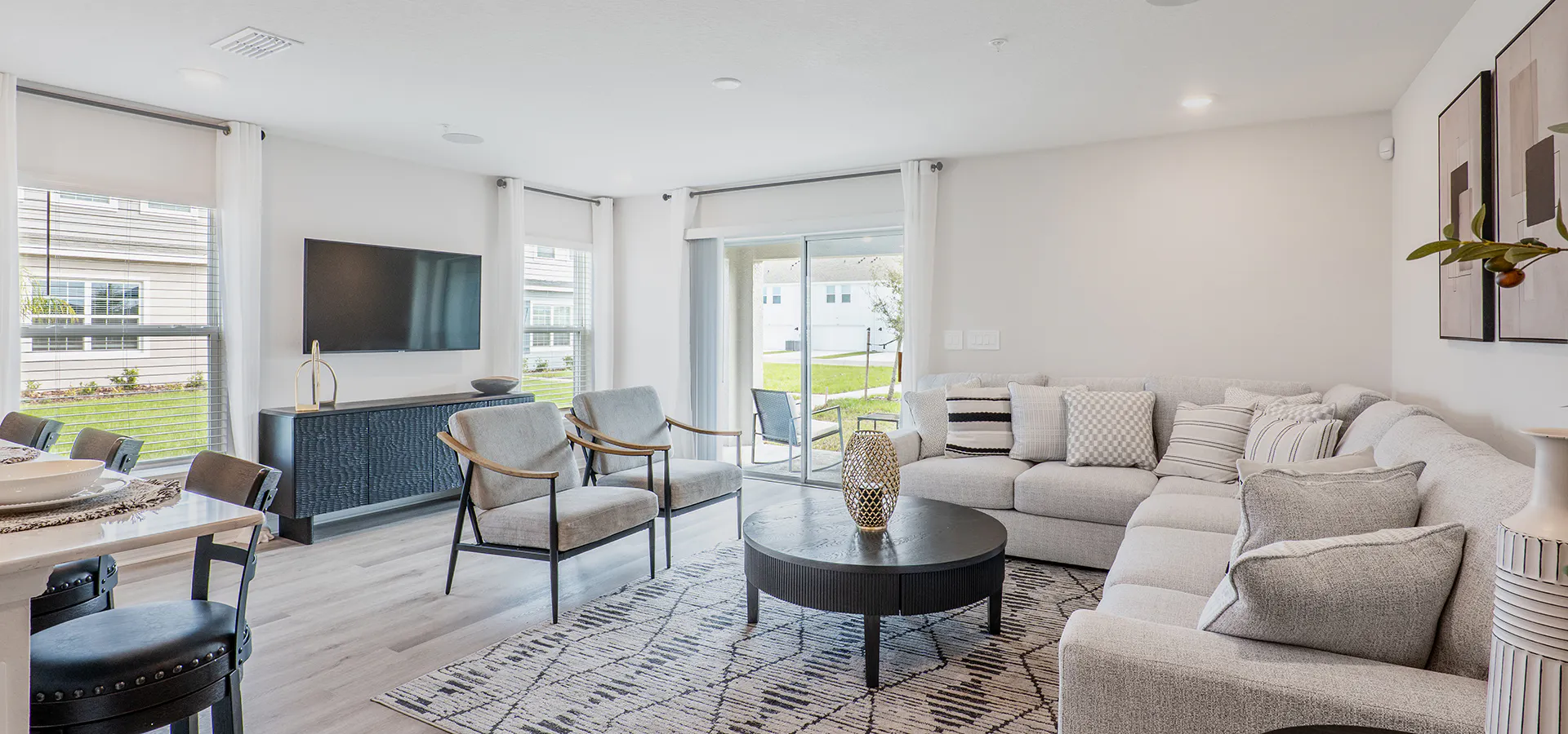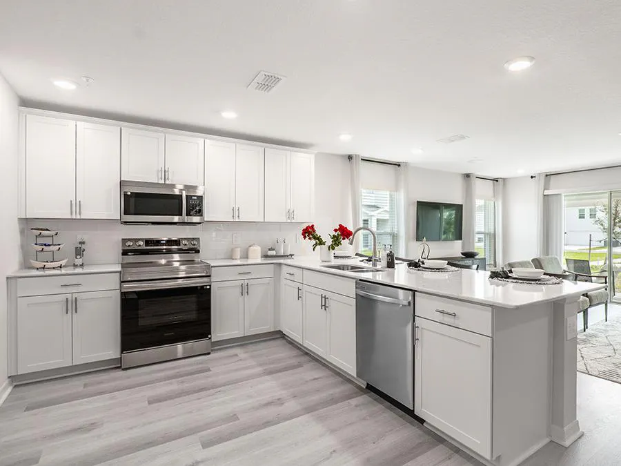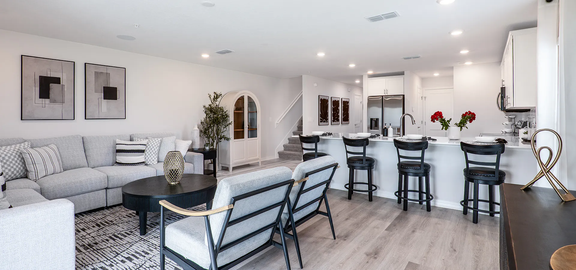 Say hello to the Daisy, a 2-story end-unit townhome with a garage available now at Bridge Pointe in St. Cloud, Florida.