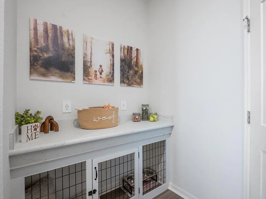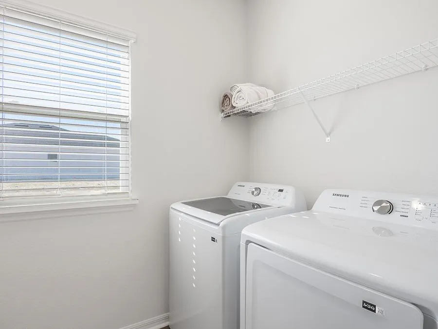 - A mud room with a drop zone at the garage entry, and an adjacent laundry room
