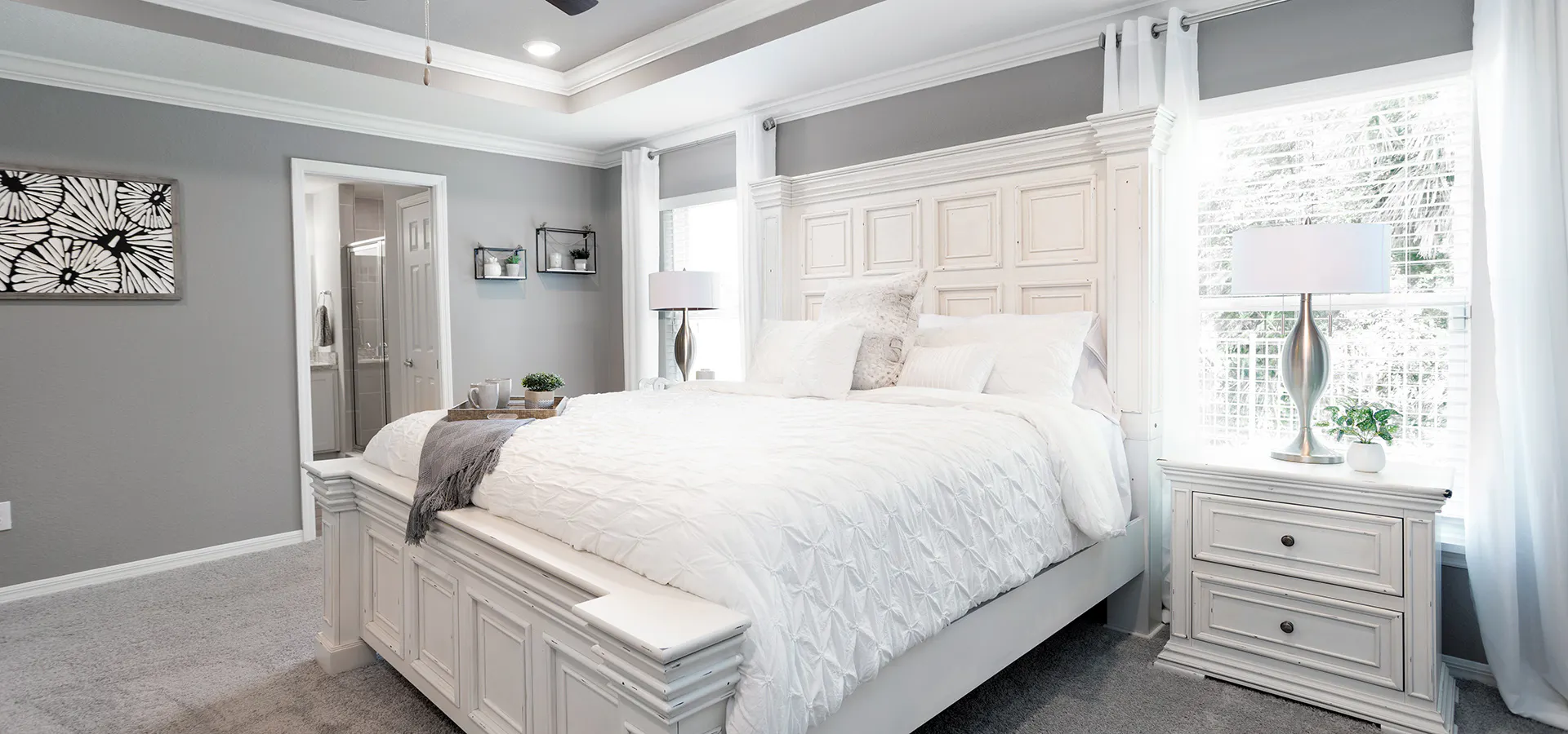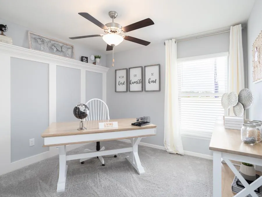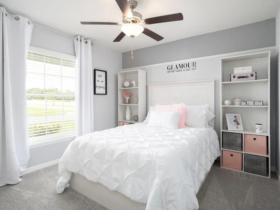 The Raychel provides you with a welcoming, open living area with luxury vinyl plank flooring under an airy volume ceiling. Relax in your beautiful owner's suite with an elegant tray ceiling, a walk-in wardrobe, and an en-suite bath including a decorative tiled shower with glass enclosure, dual vanities, and a closeted toilet.