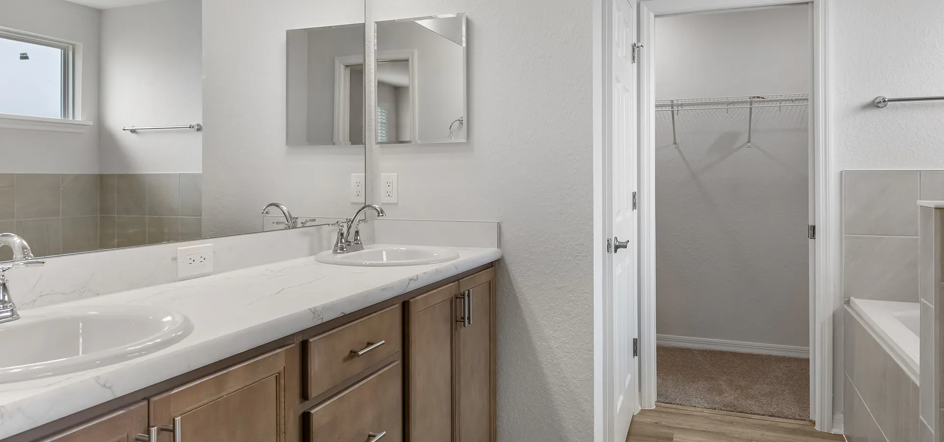 The 2-story Wesley II provides you with a desirable open living area and kitchen with luxury vinyl plank flooring, opening to an oversized covered lanai that spans the back of the home, extending your living space outdoors! Upstairs, you'll find 5 bedrooms plus a loft, including a private owner's suite that is complete with a luxurious en-suite bath with a garden tub, a decorative tiled shower, dual vanities, and a large walk-in wardrobe.