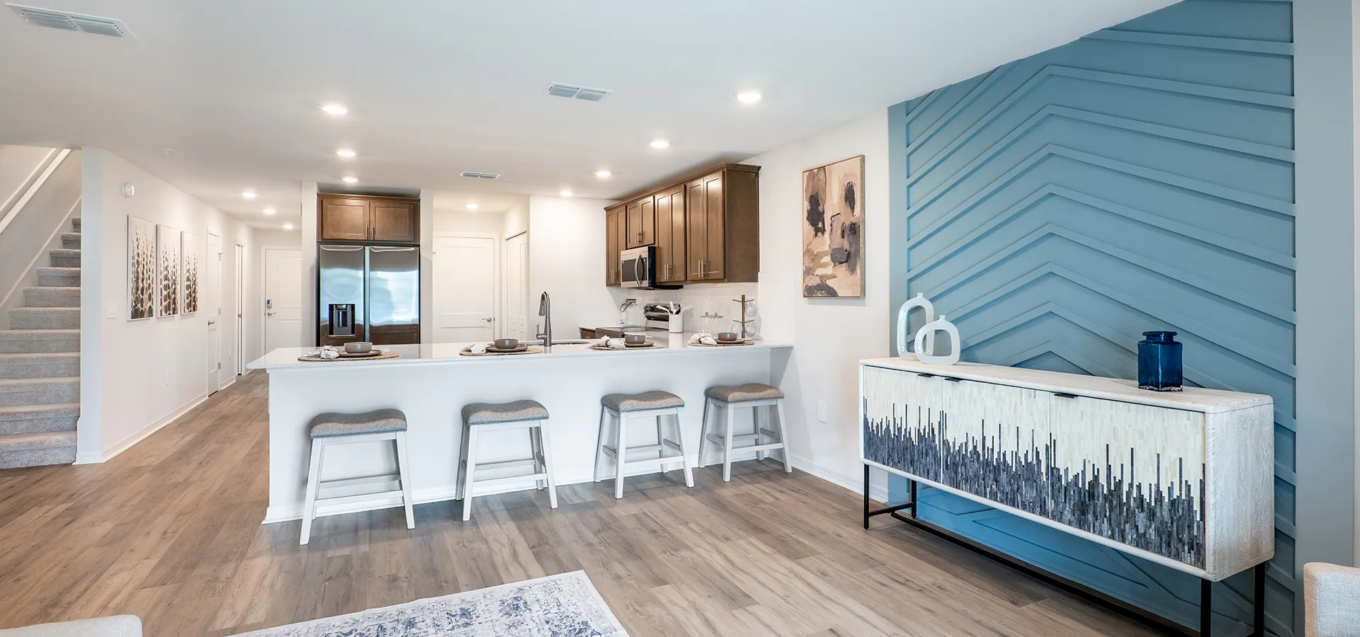 - A counter-height breakfast bar