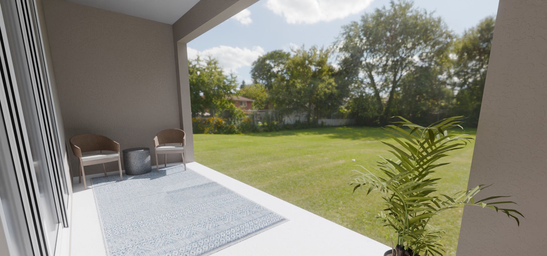 - A two-car garage