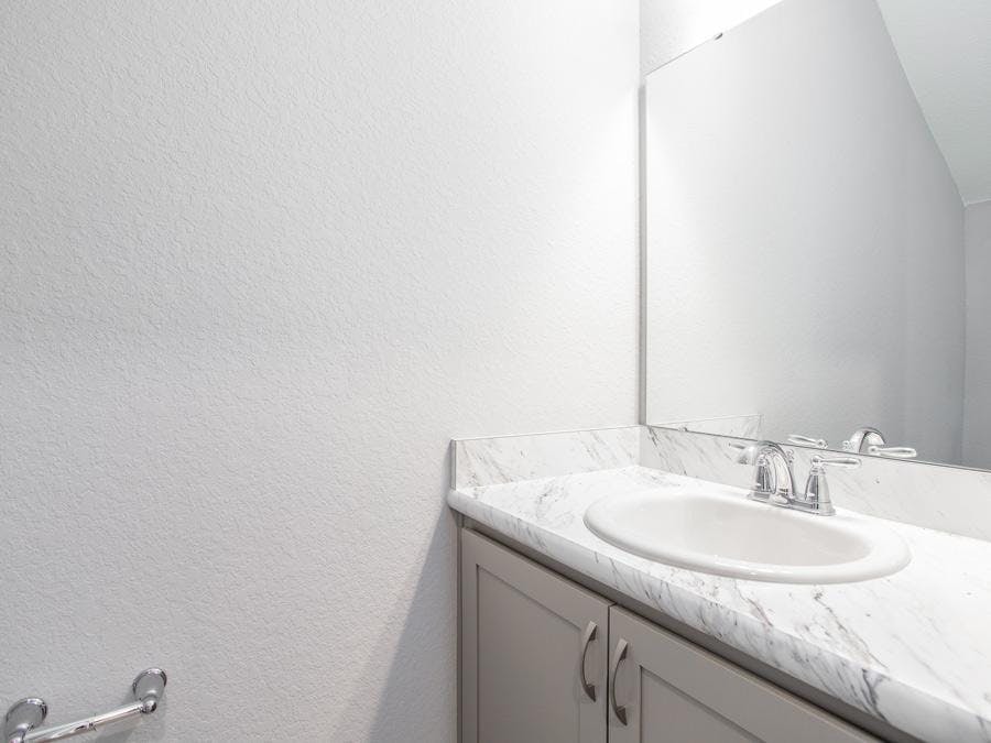 - Jack-and-Jill bathroom with dual vanities, a linen closet, and an enclosed tub and toilet area, serving bedrooms 2 and 3
