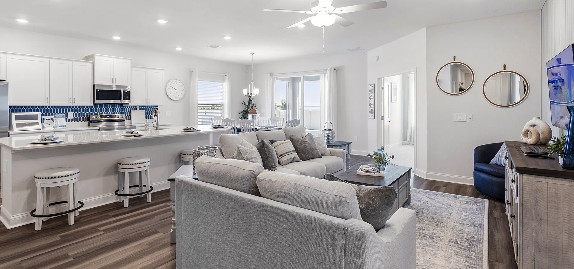 Beautiful homes at Bellaviva offer 1,700+ sq. ft. of living space with spacious open-concept layouts, flexible plan options, and desirable outdoor living space. Due to the unique nature of this community, only certain homes fit each homesite, so check out the interactive sitemap for availability! Once you've selected your ideal home site and plan, you'll work with a professional designer at our Personal Selection Studio to personalize your dream home to your style and needs!