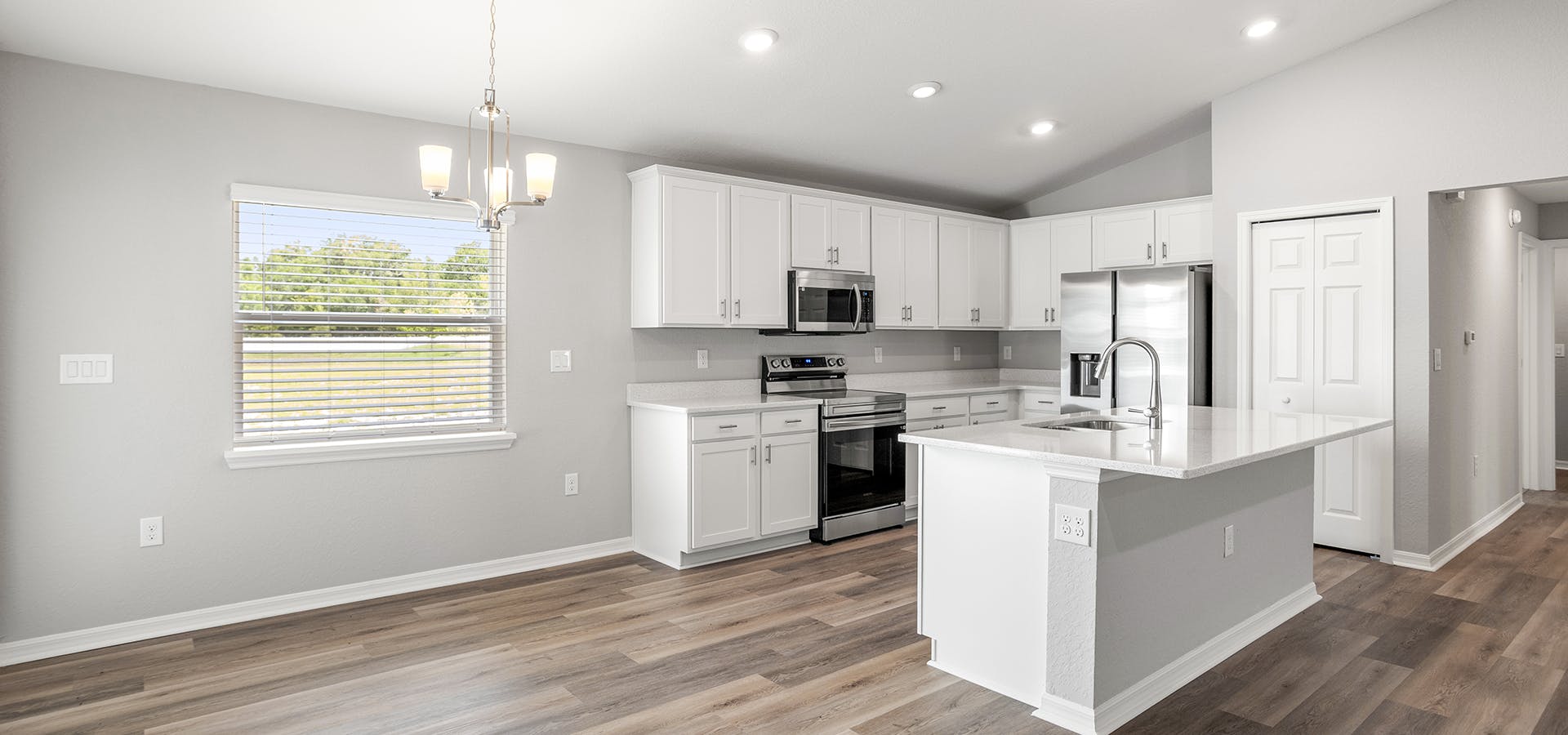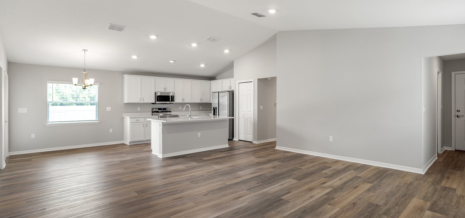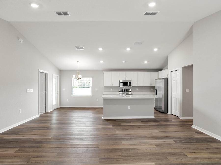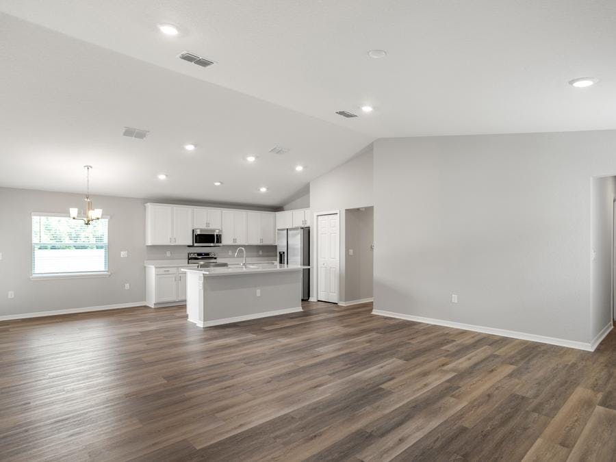 - Low-maintenance luxury vinyl plank flooring throughout the living areas, kitchen, laundry room, and bathrooms