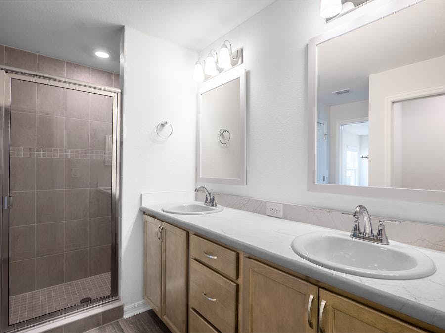 The Parsyn provides you with a welcoming, open living area under an airy volume ceiling with luxury vinyl plank flooring. . Relax in your beautiful owner's suite with a large walk-in wardrobe and en-suite bath including a decorative tiled shower with glass enclosure, dual vanities, and a closeted toilet. Two large secondary bedrooms share a hall bath.