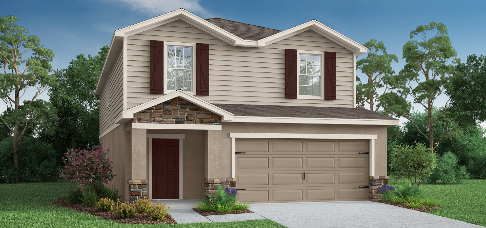 The 2-story Wesley II provides you with a modern and sunny open living area with luxury vinyl plank flooring, along with the convenience of a downstairs powder room, drop zone, and storage spaces. A spacious covered lanai spans the back of the home, extending your living space outdoors!