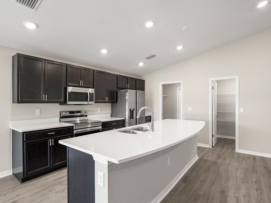 - Low-maintenance luxury vinyl plank flooring throughout the living areas, kitchen, laundry room, bathrooms