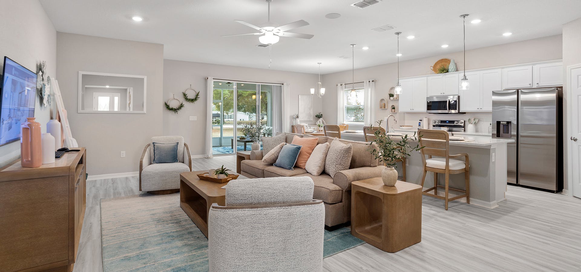 Our single-family homes in Falls of Ocala are designed for your life with energy-efficient, low-maintenance, single-story homes that make living easy, featuring bright and open layouts, flexible-use rooms, and a front porch or covered lanai to enjoy outdoor living. If you choose to build, a professional designer at our Personal Selection Studio will assist you with selecting options to personalize your dream home to your style and needs!