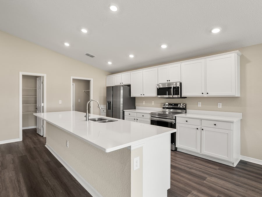 - Low-maintenance luxury vinyl plank flooring throughout the living areas, kitchen, laundry room, and bathrooms
