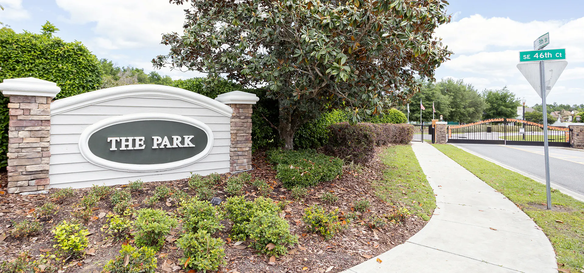 The Magnolias in Ocala is a sought-after community of small gated neighborhoods featuring distinguished homes. In The Park, sidewalks meander past front porches, with large homesites providing privacy and space between neighbors, and homes centered around a park and common areas that foster a sense of community.