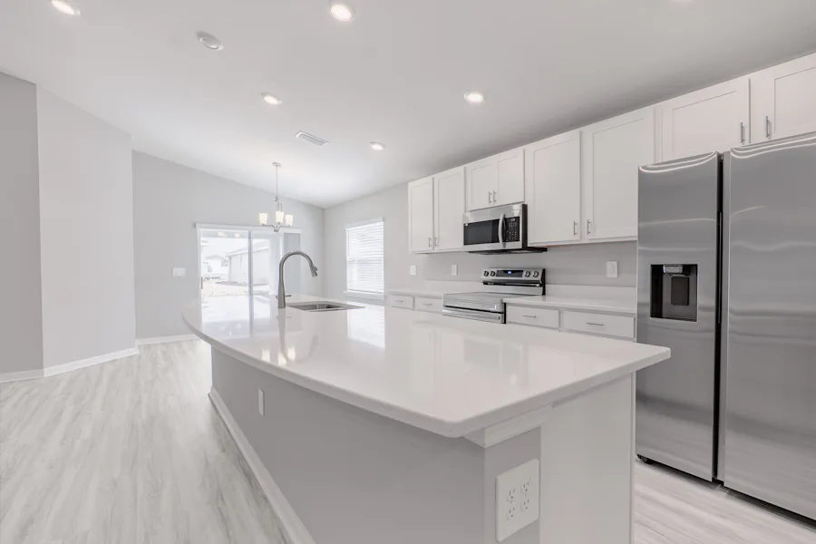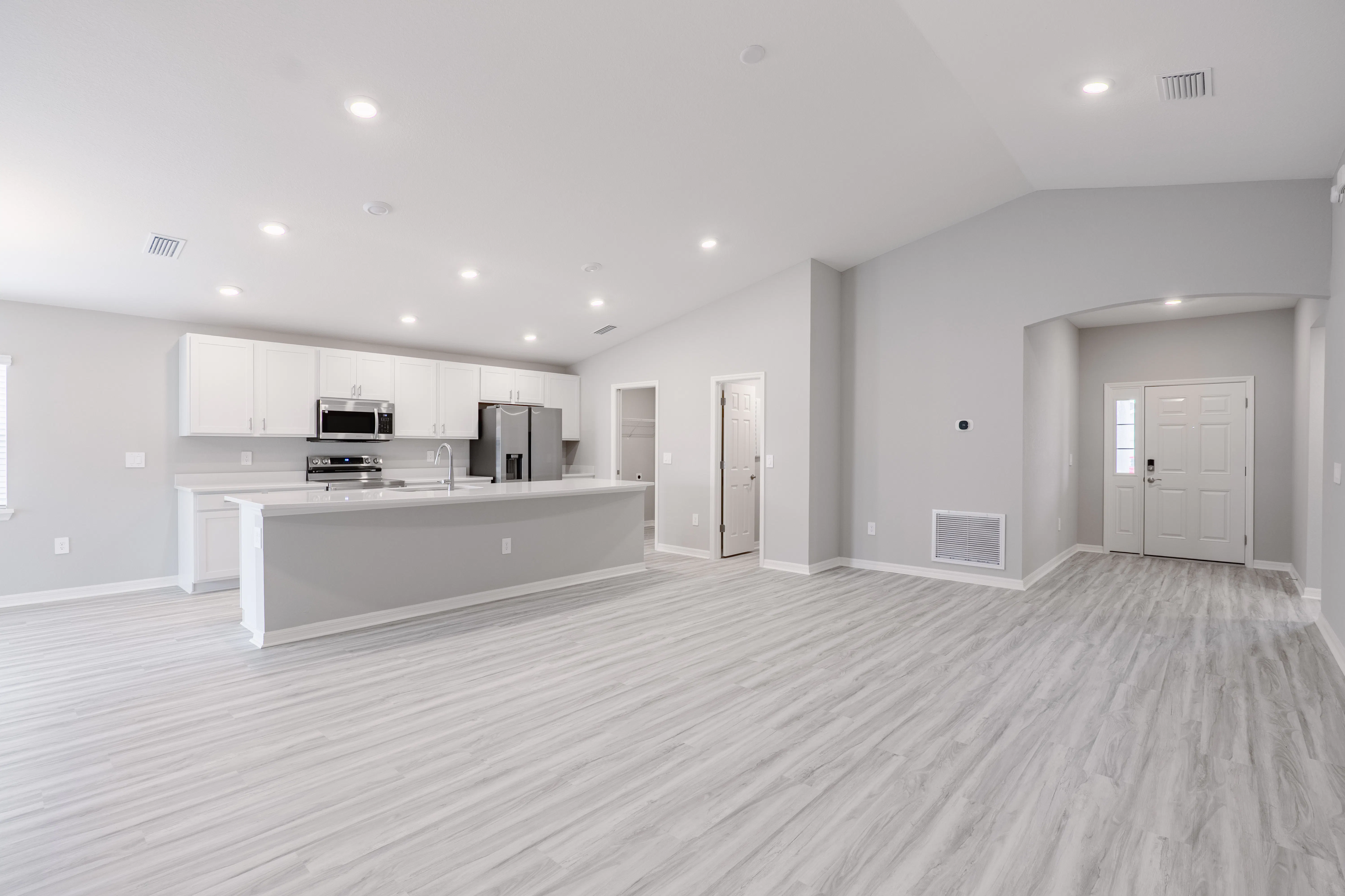 The Raychel provides you with a welcoming, open-concept living area with luxury vinyl plank flooring, and a sunny dining café. Relax in your luxurious owner's suite with an elegant tray ceiling, a walk-in wardrobe, and an en-suite bath including a decorative tiled shower with glass enclosure, dual vanities, and a closeted toilet.