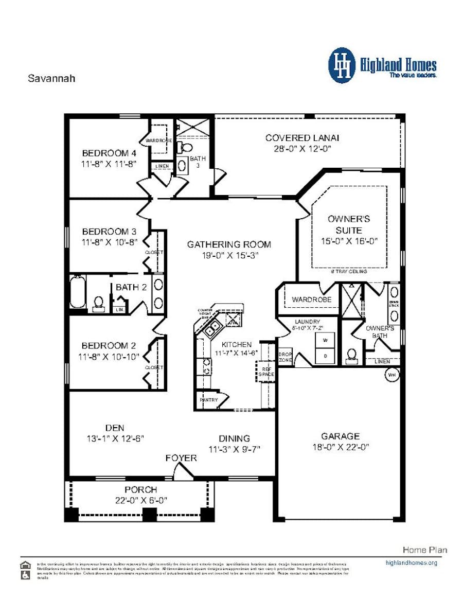 The Savannah features wow-worth curb appeal thanks to a Craftsman-style exterior and front porch, and versatile interior space with a den, dining room, and an open kitchen and gathering room. A spacious covered lanai provides desirable outdoor living space, and you will love your spacious owner's suite finished with an elegant tray ceiling, a large walk-in wardrobe, and an en-suite bath with dual vanities, a decorative tiled shower, a linen closet, and a closeted toilet.