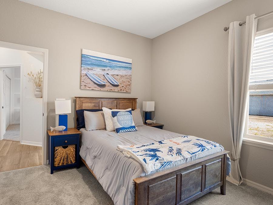 - Low-maintenance luxury vinyl plank flooring throughout the living areas, kitchen, laundry room, and bathrooms