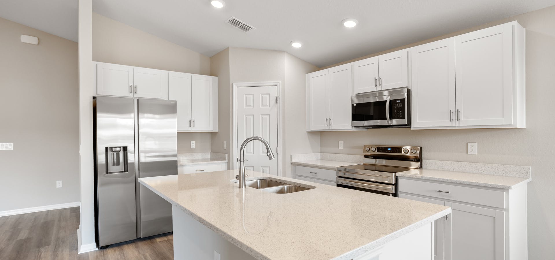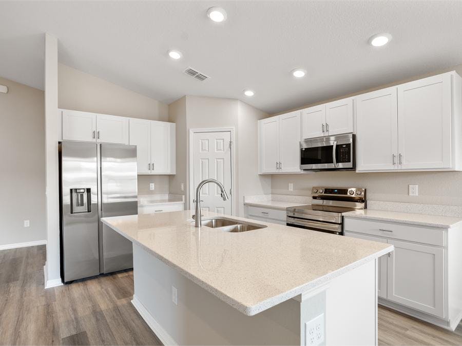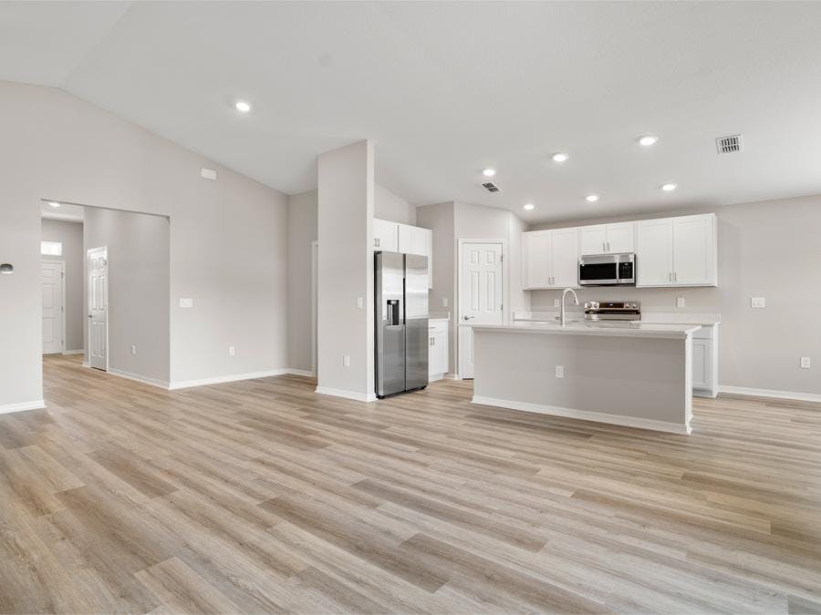 - Low-maintenance luxury vinyl plank flooring throughout the living areas, kitchen, laundry room and all bathrooms