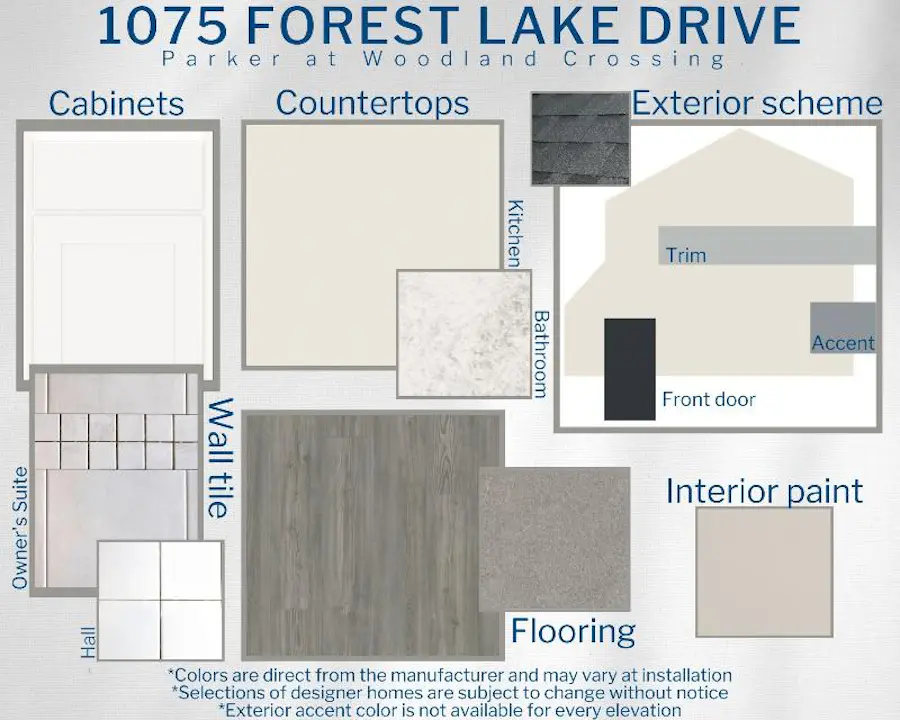 The homeowner-favorite Parker plan features a Craftsman-style exterior and a fully open living area under an airy volume ceiling with luxury vinyl plank flooring. Relax in your spacious owner's suite complete with a large walk-in wardrobe and luxurious en-suite bath including a garden tub, decorative tiled shower, and dual vanities.